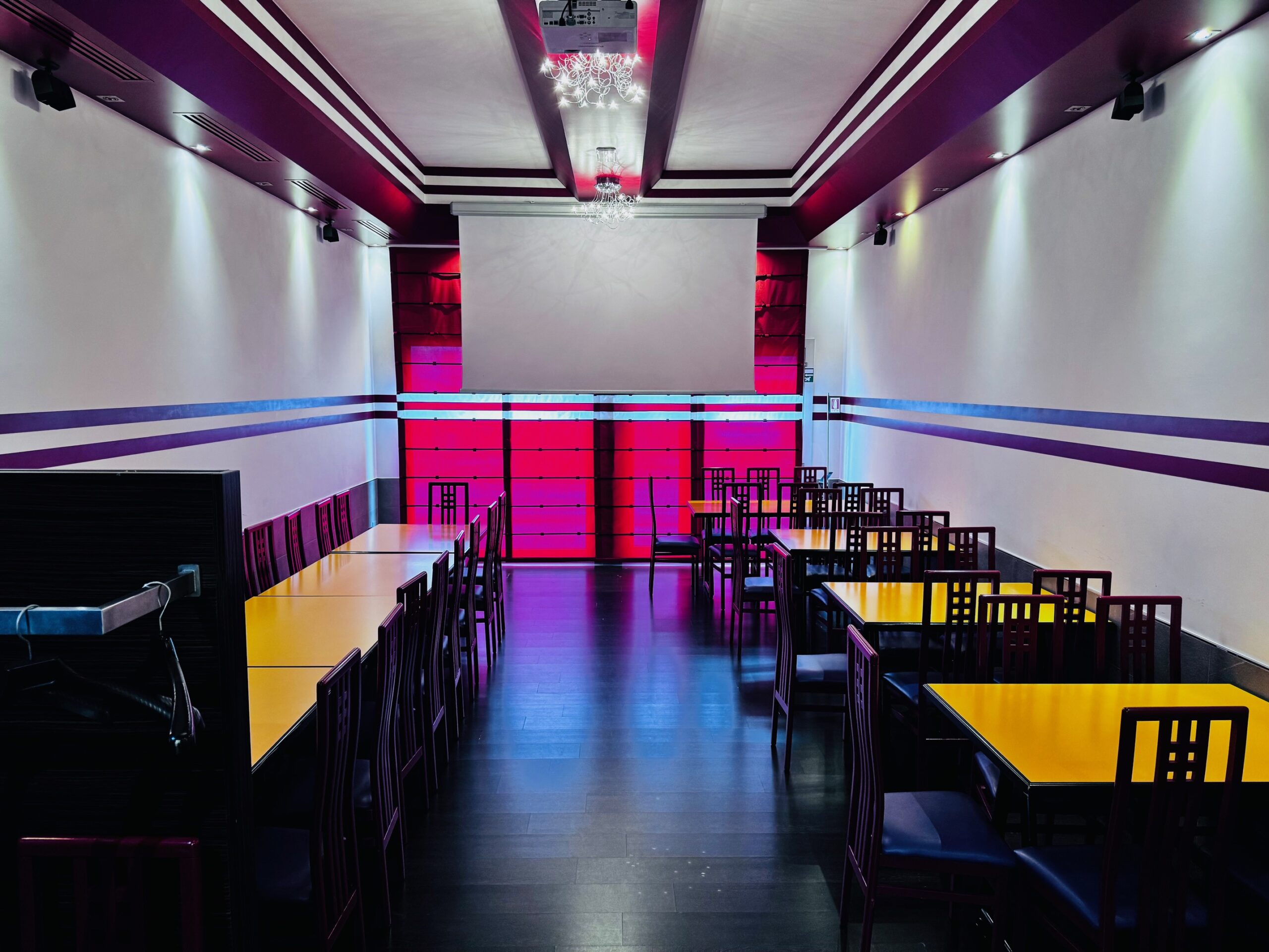 E possibile riservare la nostra sala privata, dedicata a eventi privati, riunioni, cerimonie, feste di compleanno, diciotessimi, feste di laurea, ma anche battesimi, comunioni, cresime. E dotata di schermo gigante e proiettore, guardaroba e sistema audio.
